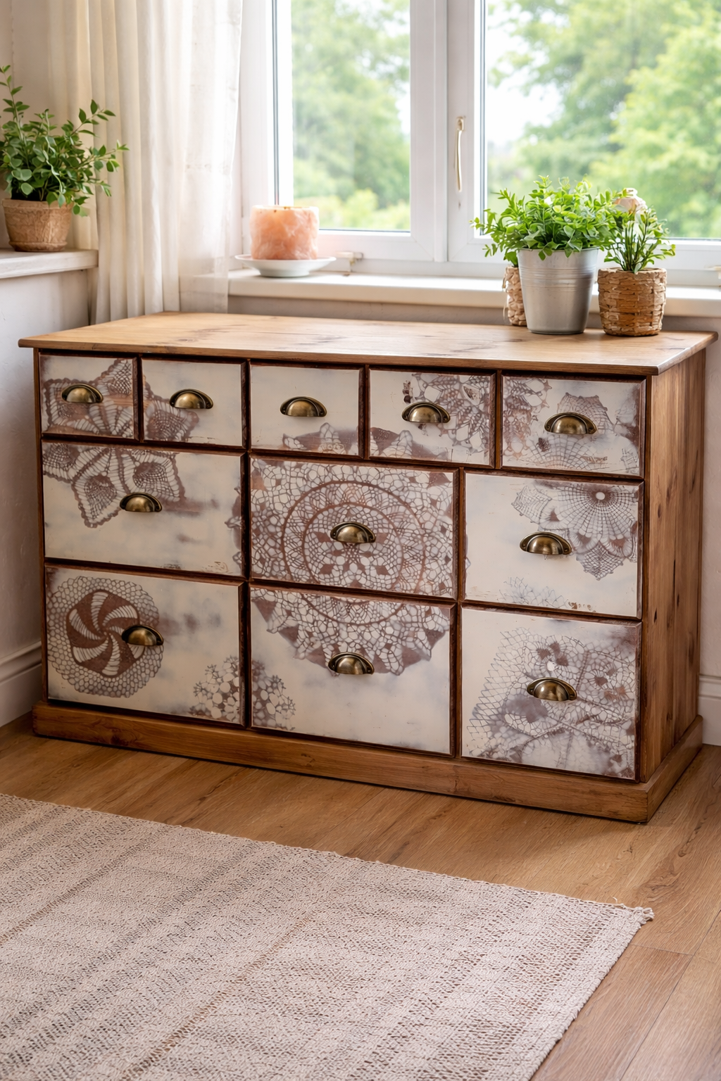 Diese vintage Kommode wurde mit viel Sorgfalt aufbereitet und kreativ neugestaltet.